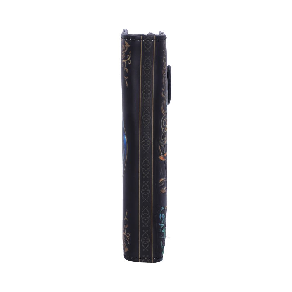 From the untamed imagination of Lisa Parker, this embossed purse was created by Nemesis Now. A large owl perches on a sturdy branch, talons gripping the bark as tight as they can, while a small Fairy sits on the edge of a bark mushroom. A small Fairy door can be seen behind her, inside glows and makes you feel warmth and homeliness. Wearing a purple dress she leans forward, her brunette hair sweeping over her shoulder. This pair makes the most unlikely companions, yet they stare lovingly into each other eyes underneath the midnight sky. The beautiful embossed detailing enhances the magic and creates a striking 3D effect while the large compartments make it a wonderfully practical piece.